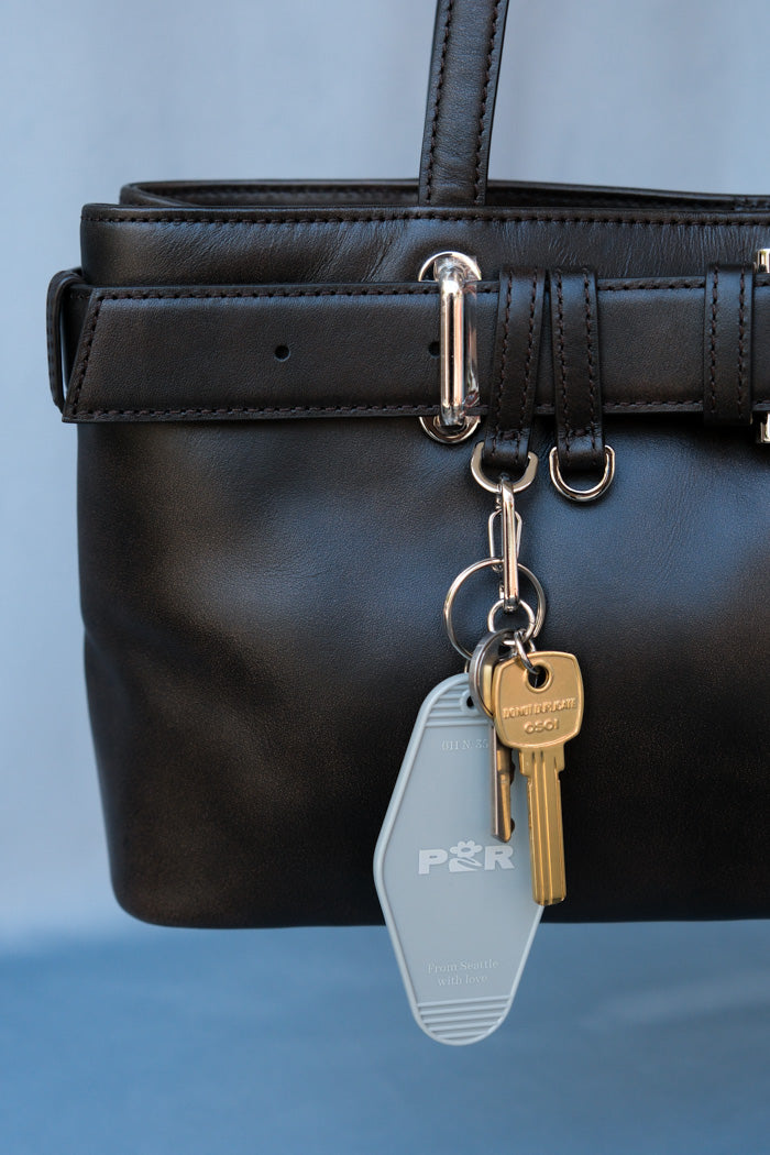 Pipe and Row’s hotel keychain is the perfect blend of nostalgia and chic design. Inspired by vintage motel key tags, it features a sleek, minimalist font on a classic acrylic silhouette. A stylish nod to old-school travel, it’s a timeless accessory for your keys, bag, or wherever you want a touch of Seattle charm. The perfect memento