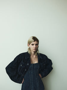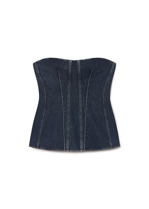 Agolde sleeveless denim Lara corset top with a subtle A-line shape in Form dark denim wash. Crafted from organic and recycled cotton, it holds its form with a weightless feel. Dark indigo marbling adds understated depth, ideal with clean, tailored bottoms or layered pieces.