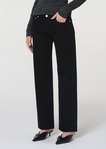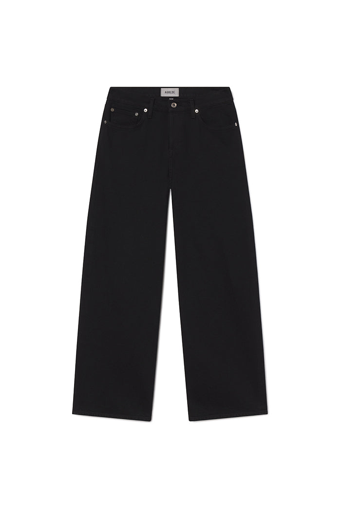 Agolde low rise loose jean in black cover wash. Low-slung silhouette with a full-length leg and easy drape.