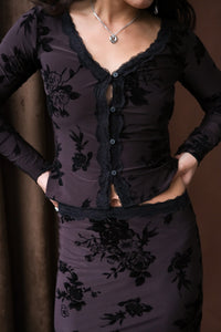 Resume Holly fitted blouse v-neck jersey cardigan with all-over floral twilight print and decorative band. Pair with the Holly skirt for a matching set.