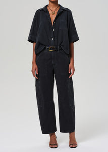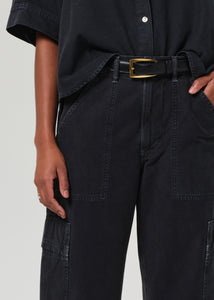 Citizens of Hummanity twill Marcelle low slung cargo pant in washed black. Easy and effortless. Features cargo-inspired detailing and relaxed straight leg that tapers at the ankle. Crafted a breathable but rigid, non-stretch twill for all day wear.