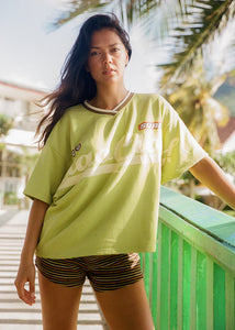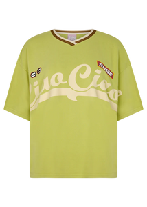 Ciao Ciao Enzo lime green vintage inspired sport jersey. A relaxed-fit, featuring bold "Ciao Ciao" lettering, sporty patches and an effortless oversized silhouette. This piece blends retro charm with modern ease.