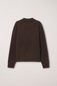 Dunst lightweight brushed alpaca, wool blend unisex open collared v-neck knit sweater in dark brown.