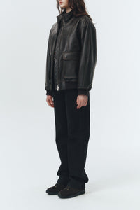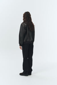 UNISEX STAND COLLARED LEATHER BLOUSON