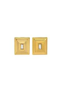 Heaven Mayhem lightweight Plaza rectangular 18k gold-plated earrings with a baguette-cut crystal in the center.
