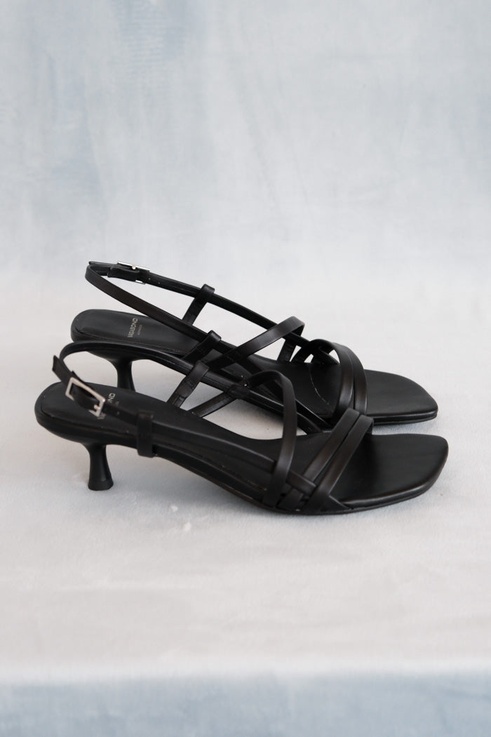 Vagabond Jonna strappy low heel in black leather. Adjustable back strap with buckle fastening.