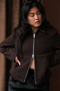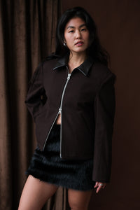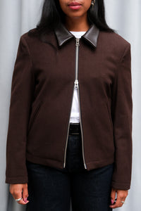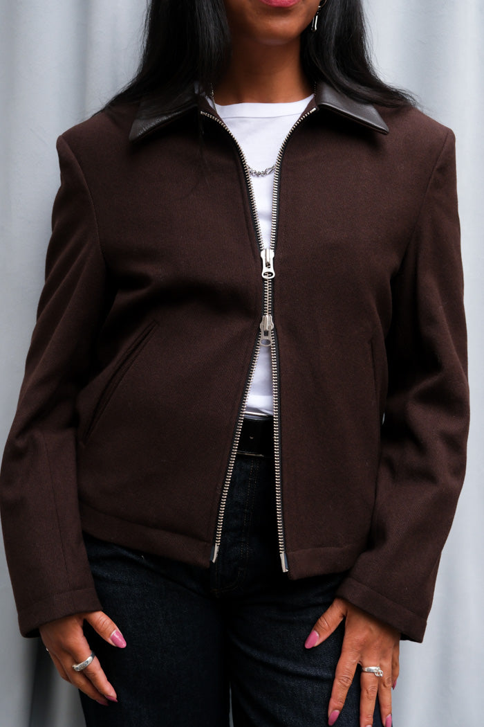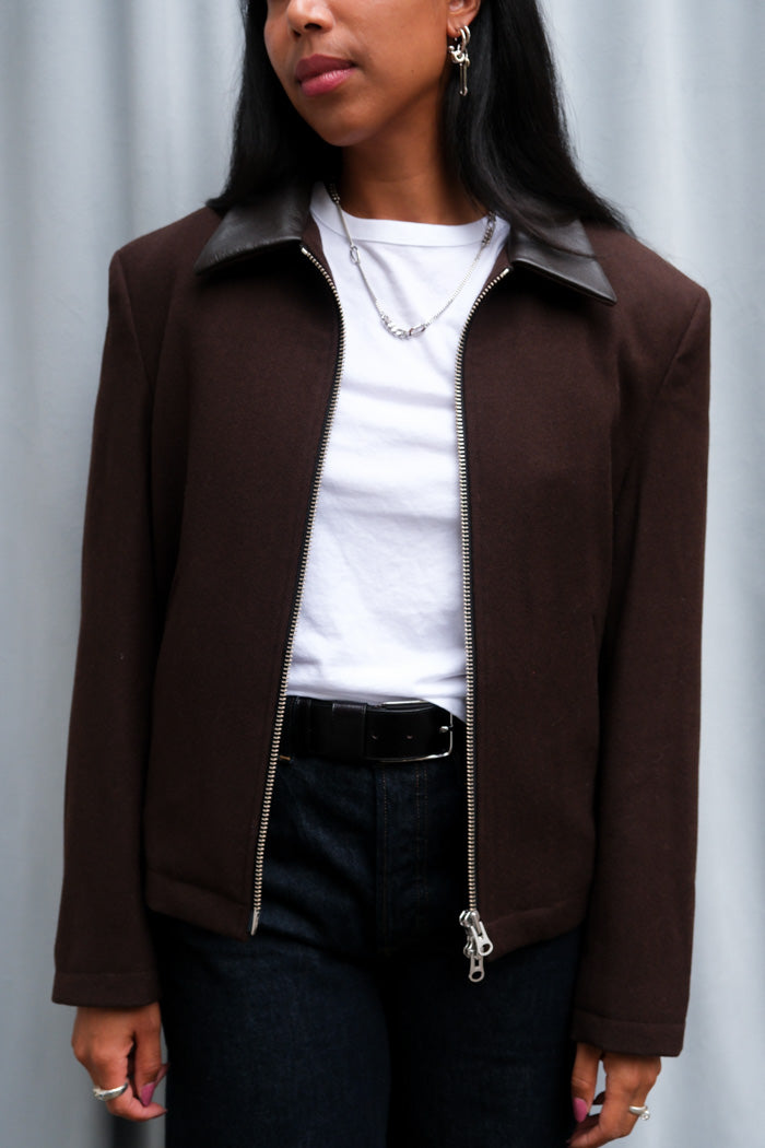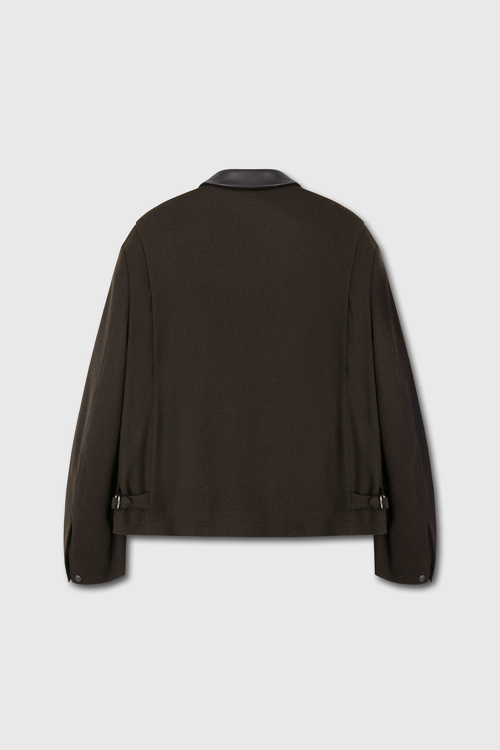 Tonywack leather trim coat. Constructed from high-density wool blend with quilted twill lining for warmth and comfort. Two-way zip closure for styling versatility. Chest welt pocket plus two front welt pockets . Adjustable press-stud cuffs for tailored fit. Cinch tabs at side seams for customizing the waist silhouette.