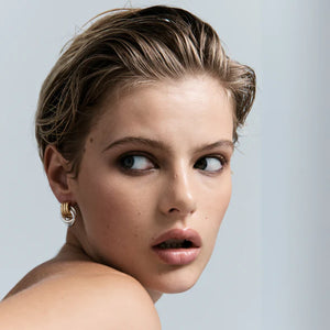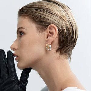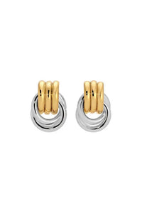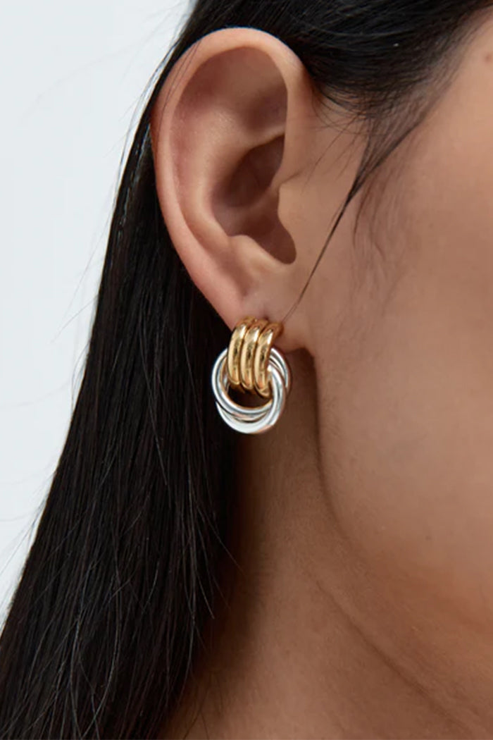 Heaven Mayhem baby knot earring in mixed silver and gold metal. Hallow light weight earrings that will be in your everyday rotation.