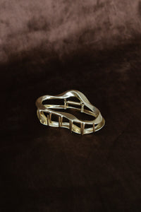 Large open oval hair claw in gold.