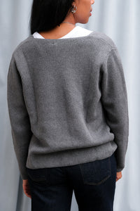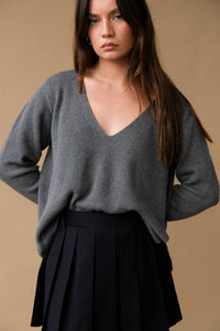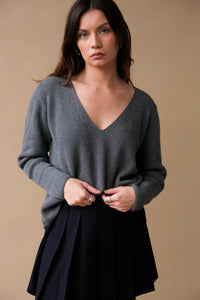 Thinking Mu Aloma knit V neck sweater in grey melange.