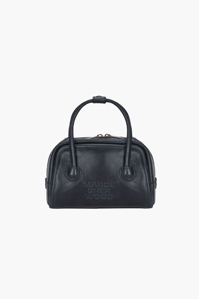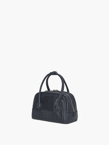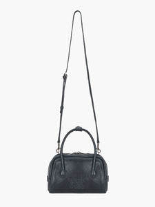 MARGESHERWOOD soft tote mini handbag in navy blue pull-up leather. Cross body strap included.