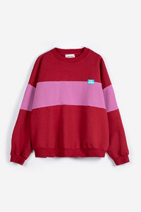 Bobo Choses relaxed crewneck sweatshirt in red pink color block. Pair with the matching shorts for a full set.