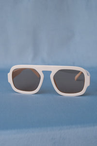 Veda thick squared off, aviator sunglasses in beige frames with off white beige lens.