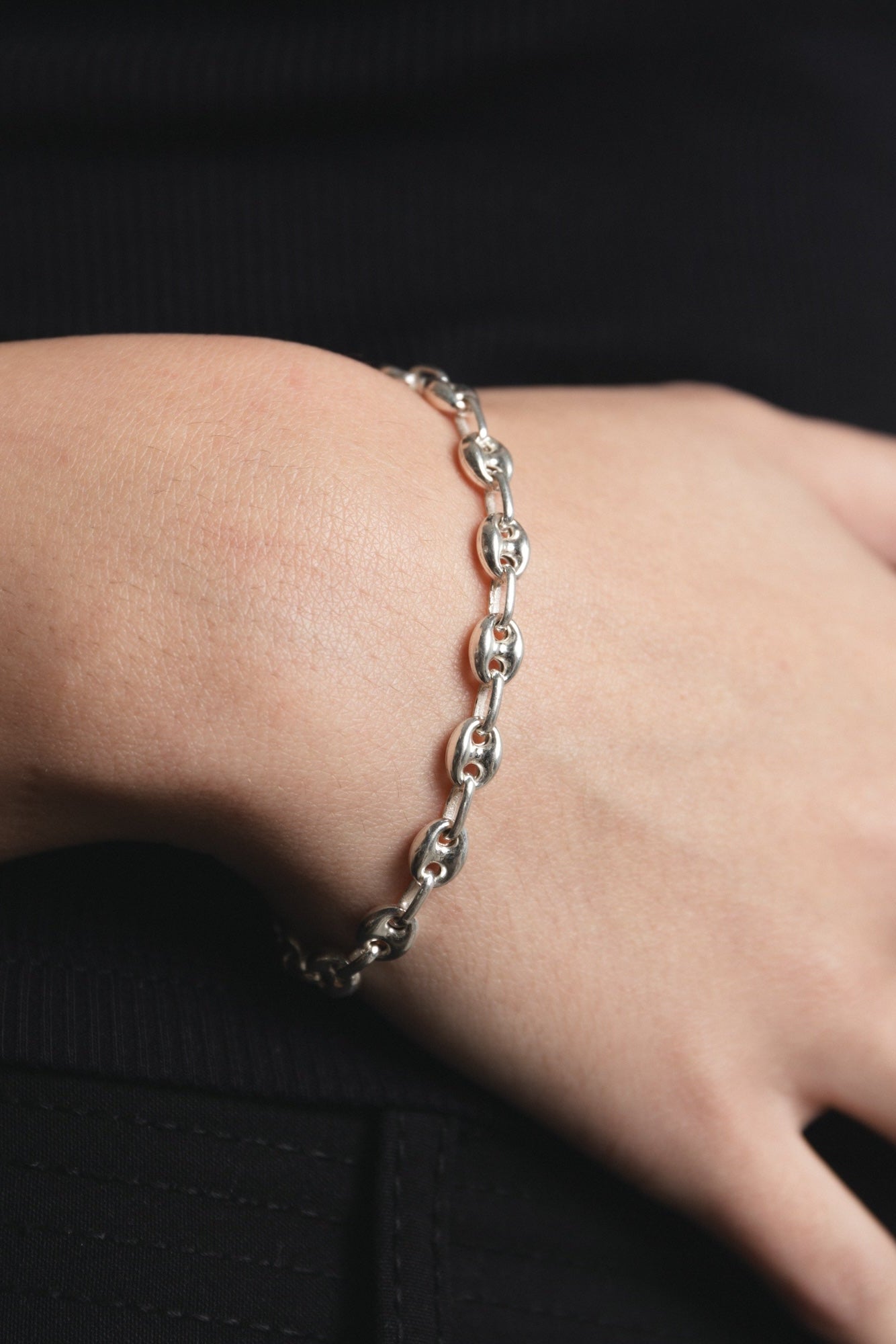 Wolf Circus Mariner chunky puffed link bracelet in silver. Lobster clasp closure.