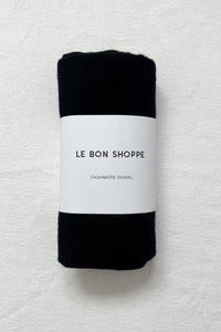 Le Bon Shoppe triangle shape, cashmere shawl, scarf in black. Soft, generous silhouette that’s large enough to wrap around the shoulders or tie as a head scarf. Its versatility makes it a staple for everyday, multi-wear and a timeless gift for any occasion.