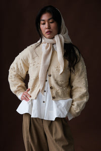 Le Bon Shoppe traingle shape, cashmere shawl scarf in oatmeal beige tan. Soft, generous silhouette that’s large enough to wrap around the shoulders or tie as a head scarf. Its versatility makes it a staple for everyday, multi-wear and a timeless gift for any occasion.