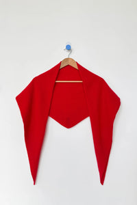 Le Bon Shoppe triangle shape, cashmere shawl, scarf in red. Soft, generous silhouette that’s large enough to wrap around the shoulders or tie as a head scarf. Its versatility makes it a staple for everyday, multi-wear and a timeless gift for any occasion.