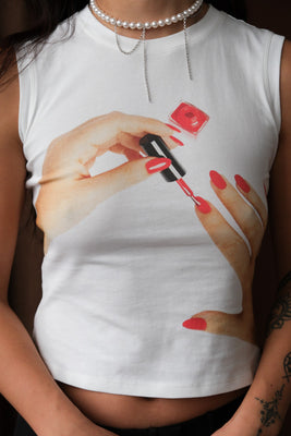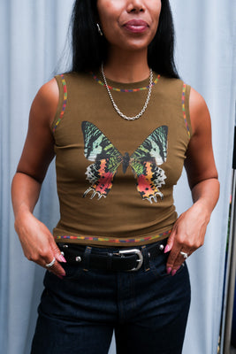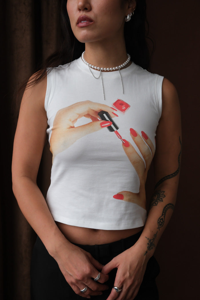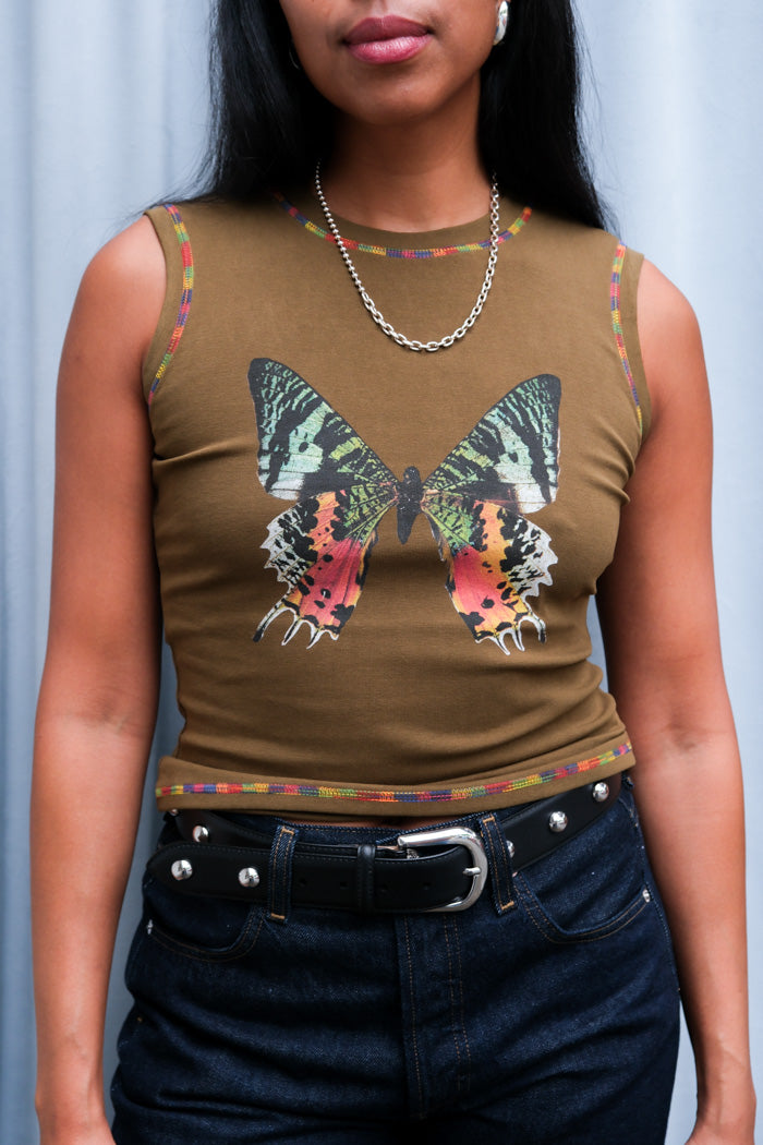 Tyler Mcgillivary Lovebird print Tee baby tee orange color blocked sleeves | PIPE AND ROW