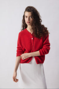 American Vintage Vito button up cardigan sweater in carmine red.