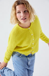 American Vintage Vito button up cardigan sweater in pineapple yellow.