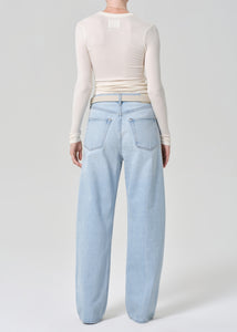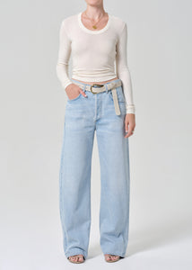 Citizens of Humanity Ayla baggy jean in Lighthouse wash. The ‘Ayla’ jean offers a refined take on the baggy silhouette with a relaxed fit that sits away from the body while maintaining a clean, intentional shape. Crafted from rigid regenerative cotton with a soft hand, it’s an easy staple that styles effortlessly. Can be styled cuffed up once or twice and creates a perfect clean fold. Button fly.