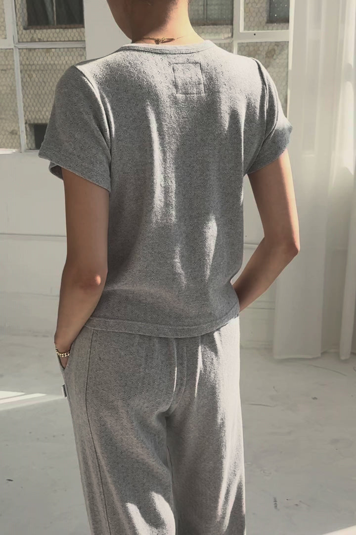 Le Bon Shoppe pointelle babe tee in melange grey. Pair with the matching bottoms for a matching set.