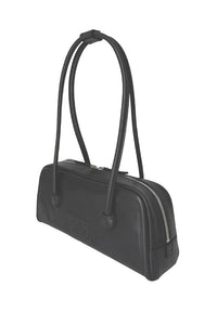 MARGESHERWOOD Soft Baguette handbag in black pull-up worn leather. Style has renamed to Soft Boston EW.