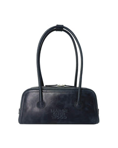 MARGESHERWOOD Soft Baguette handbag in navy blue inidigo pull-up worn leather. Style has renamed to Soft Boston EW.