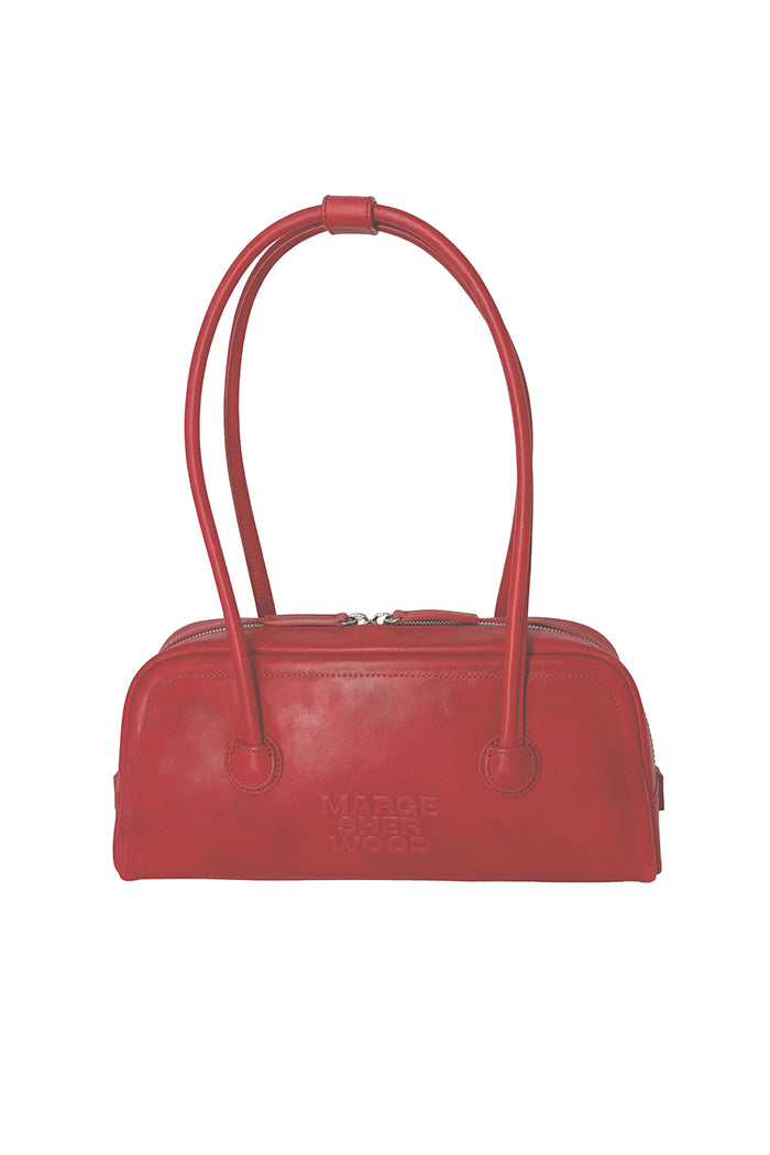MARGESHERWOOD Soft Baguette handbag in apple red pull-up worn leather. Style has renamed to Soft Boston EW.