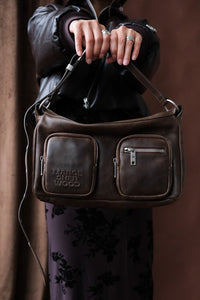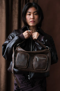 MARGESHERWOOD Outpocket Hobo bag in washed brown pullup.