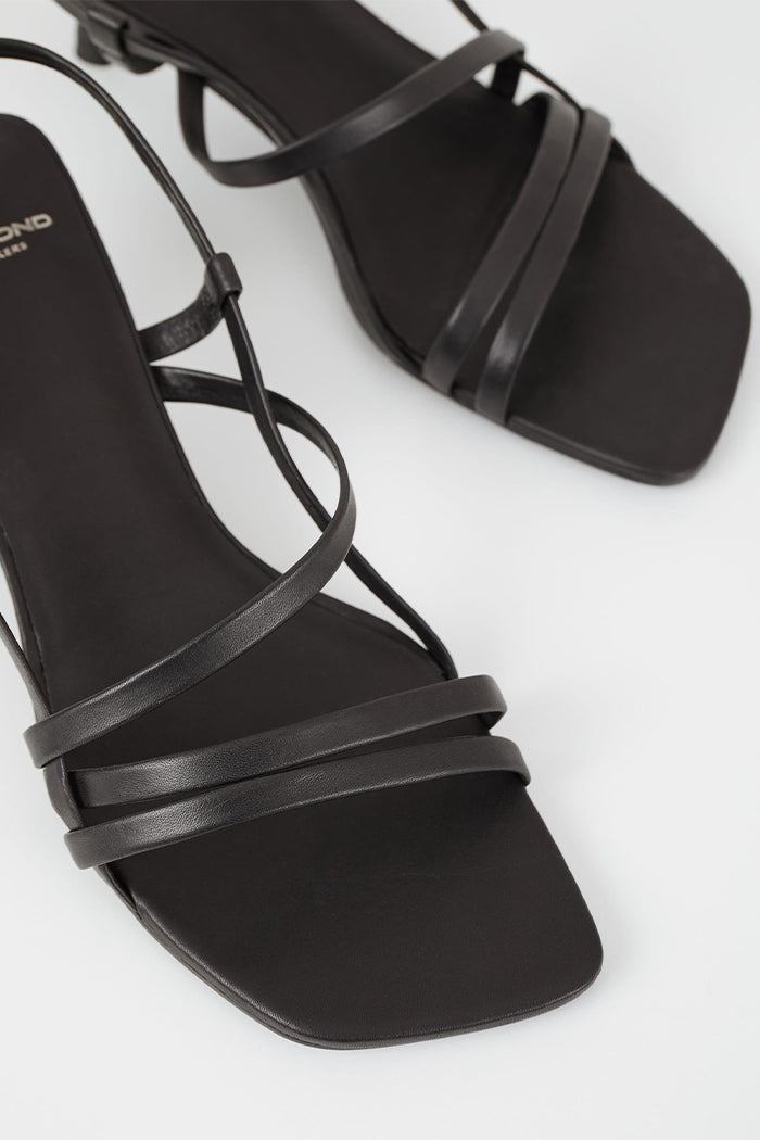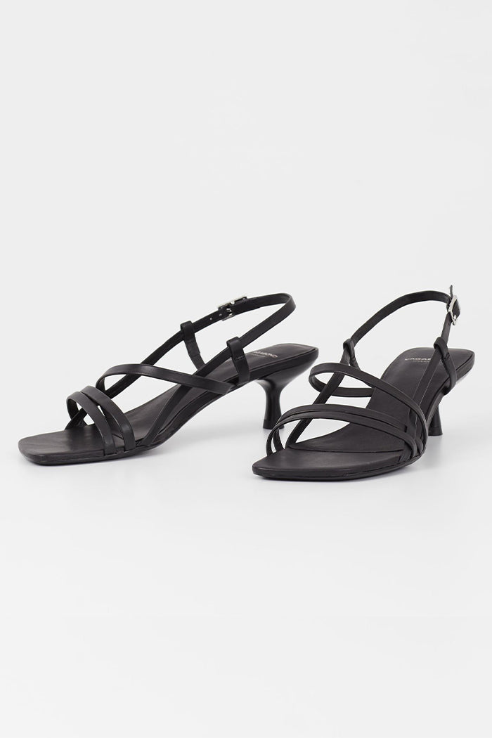 Vagabond Jonna strappy low heel in black leather. Adjustable back strap with buckle fastening.
